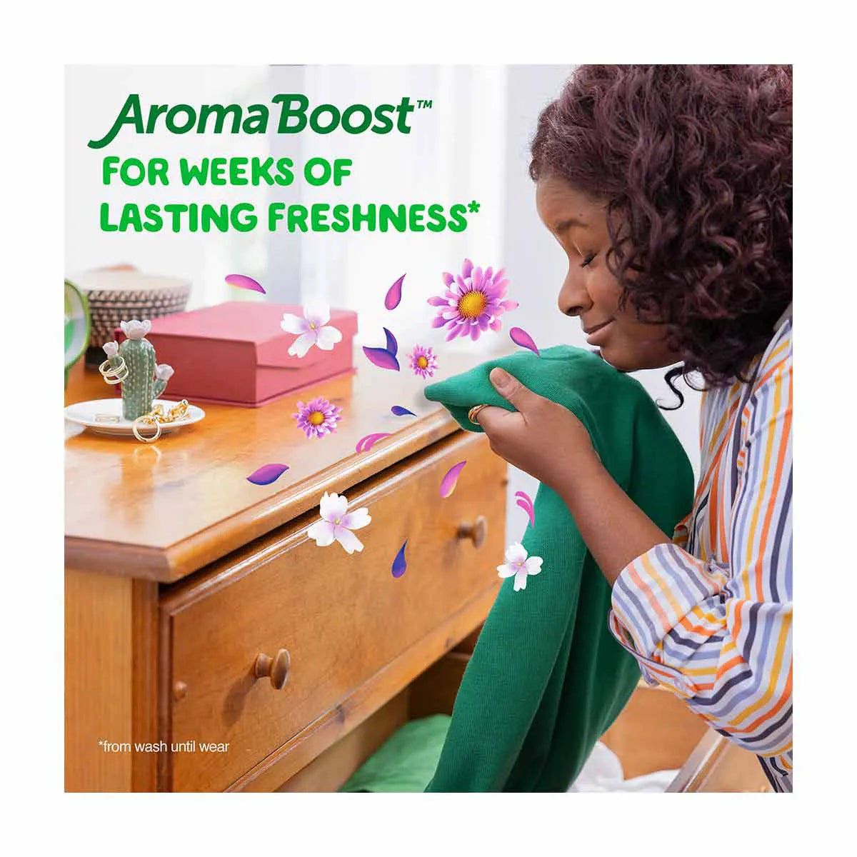 - With AromaBoost technology for weeks of lasting freshness from wash until wear